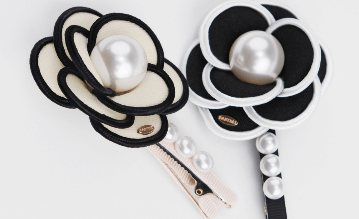 Camellia Pearl Large Hair Clip (Twill & 4 Beads)