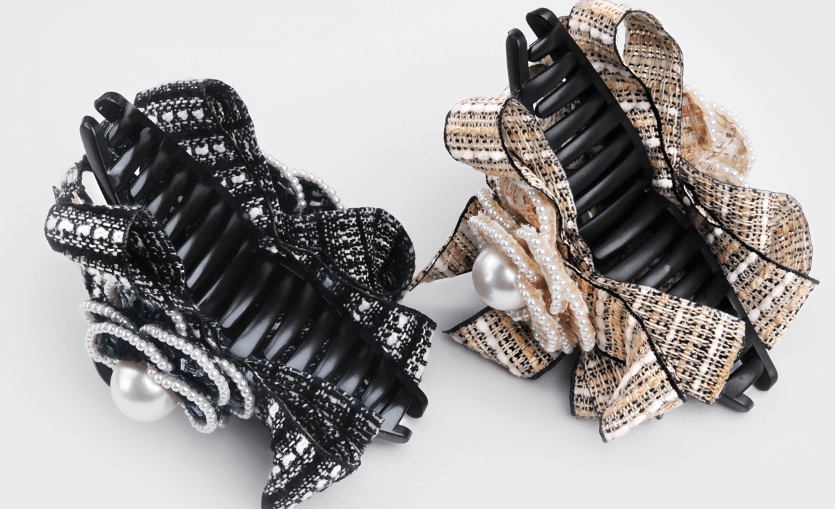 Camellia Pearl Extra Large Hair Claw (Tweed & Beaded)