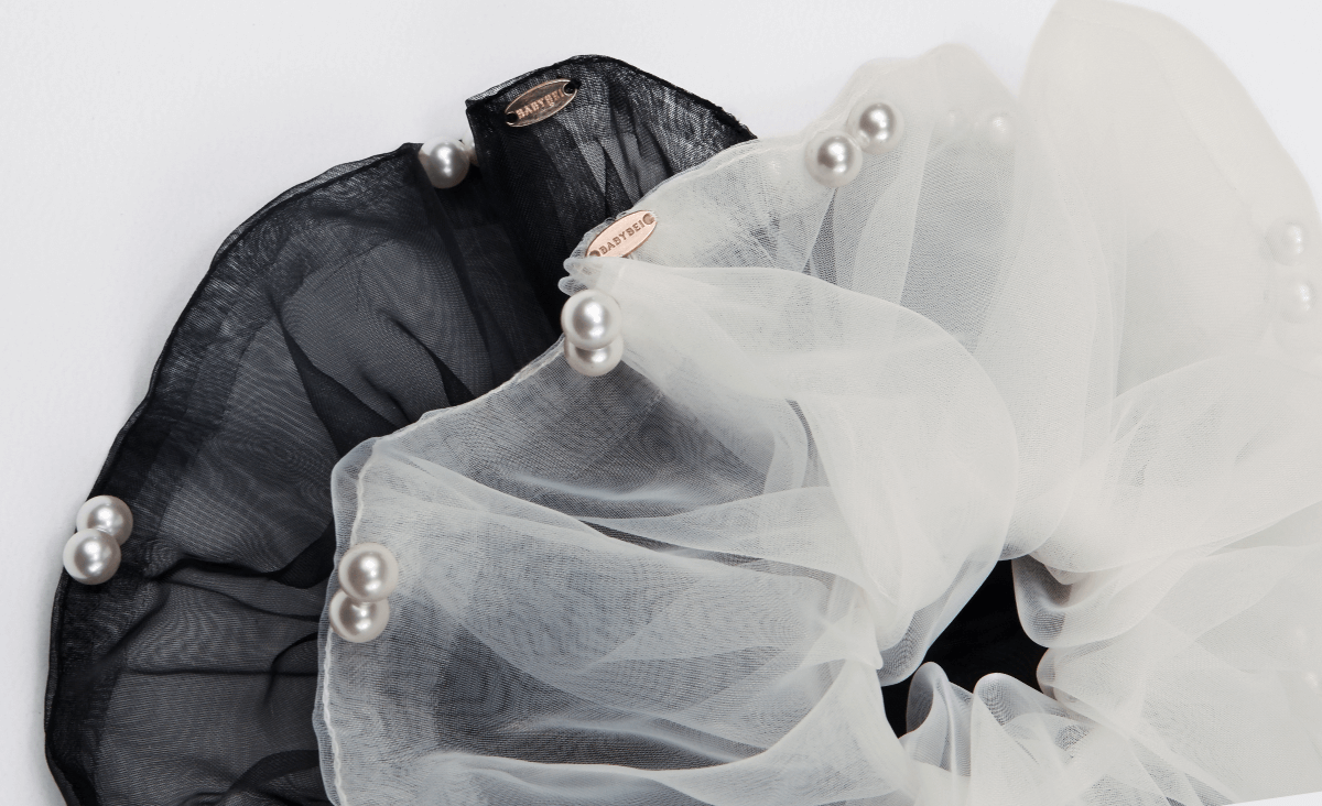 Organza Pearl Extra Large Scrunchie (Spaced & 2 Beads)
