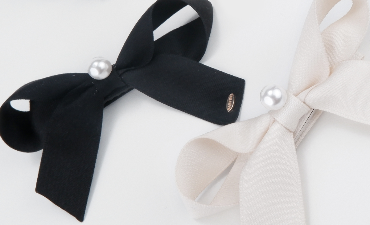 The structured, three-dimensional bow adorned with a lustrous pearl exudes a gentle and elegant charm. Easily clip up stray bangs to create a romantic and sweet hairstyle. The handmade hair clip wrapped in ribbon provides extra care for your hair.