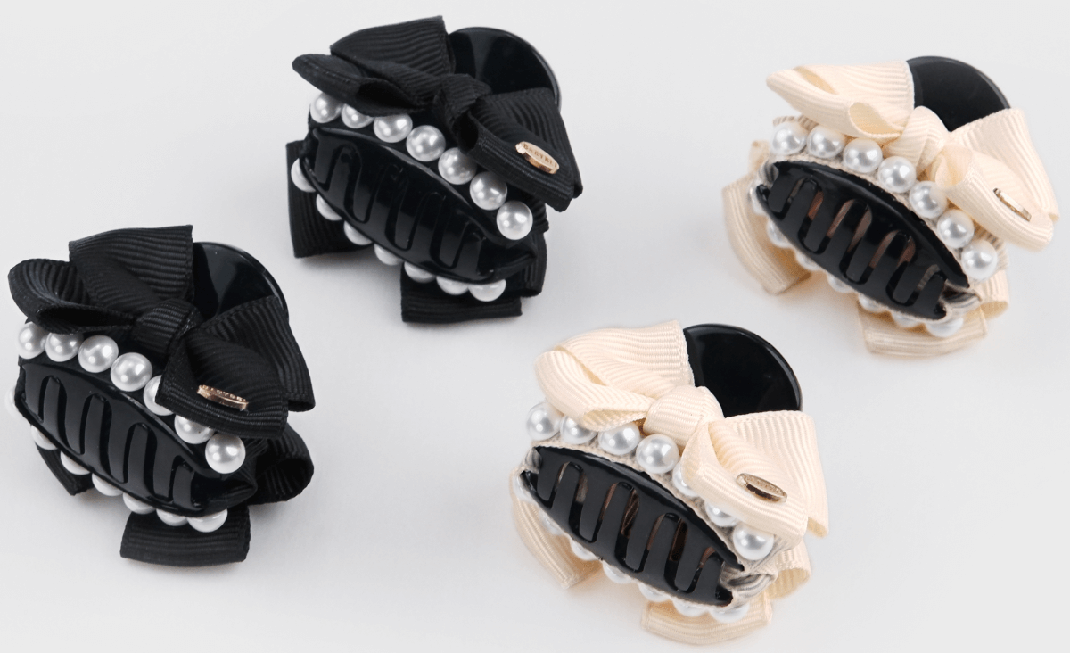 Ribbon Pearl Small Hair Claws (Bow & 7 Beads)