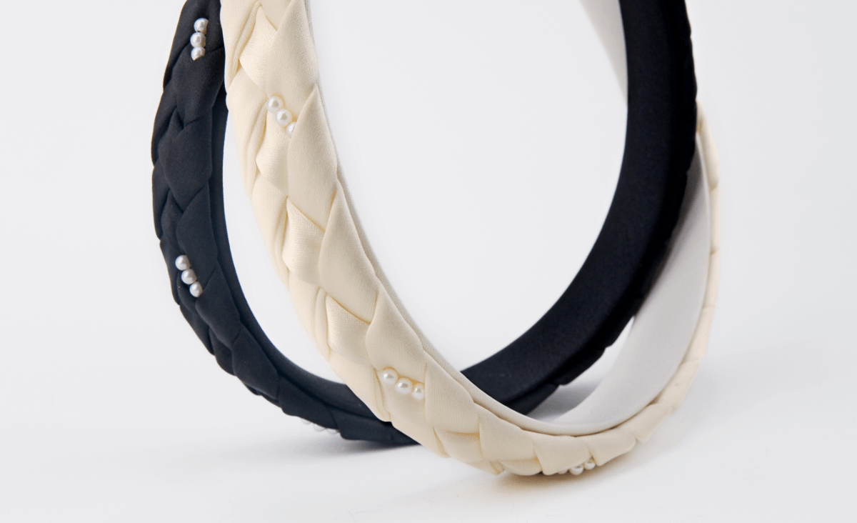 Adorned with three lustrous pearls spaced at intervals and featuring a diamond pattern, the headband exudes a gentle and elegant charm. The satin fabric's inherent luster adds a touch of romance and sophistication. The headband's widened and heightened top enhances head shape. The handmade headband wrapped in satin provides extra care for your hair.