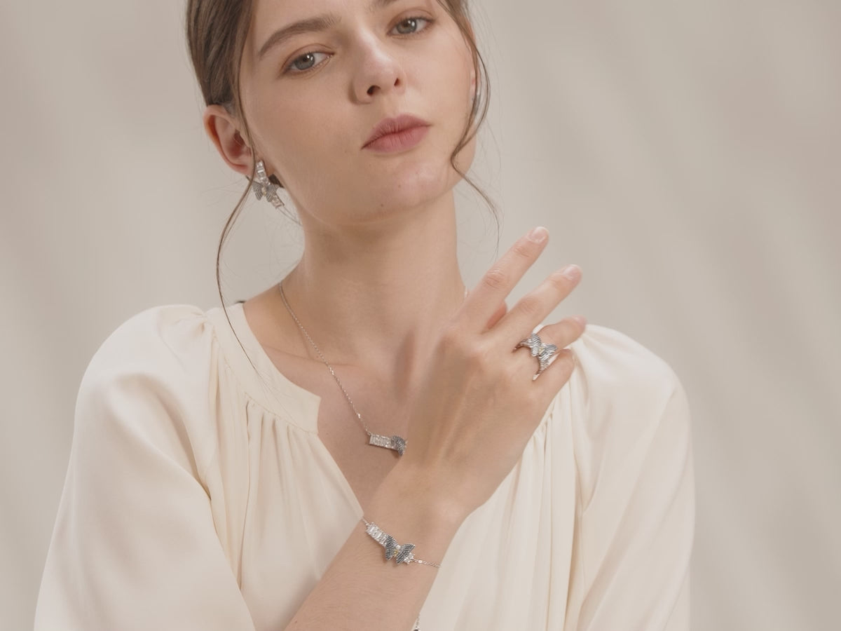 - 創意設計:璀璨白色方鋯與優雅藍色蝴蝶巧妙結合,富有層次美感