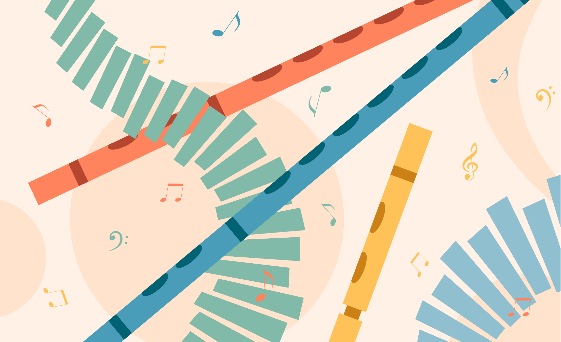 - 創意設計:以笛子為設計靈感,用錯落的貝珠表現笛聲悠揚、余音繞梁