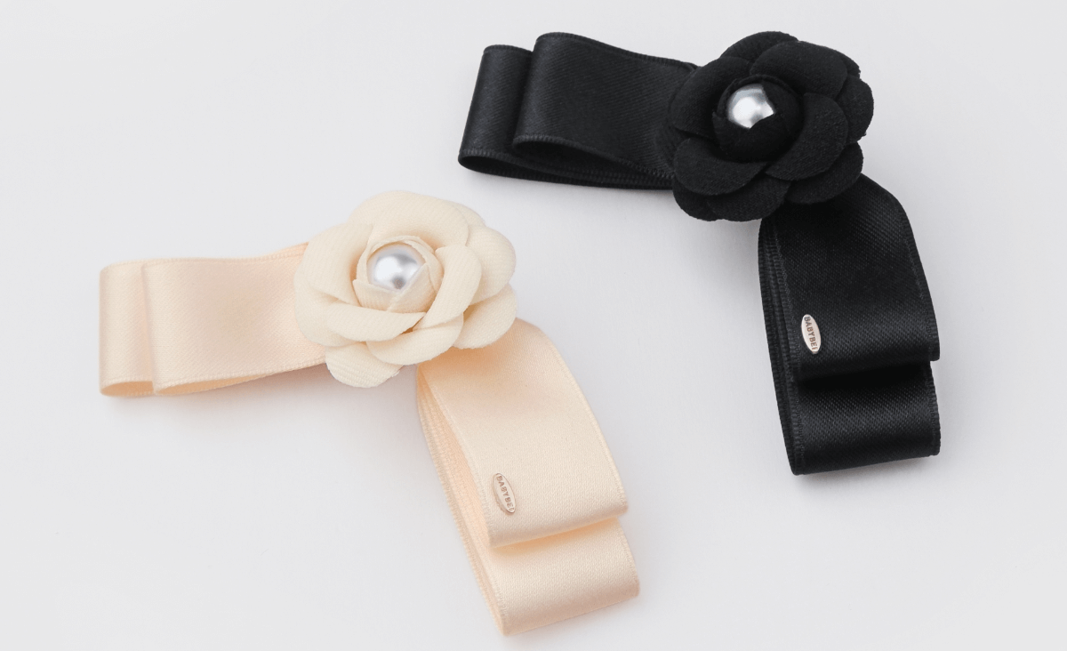 - 優雅設計:圓潤珍珠點綴山茶花中央,搭配雙層蝴蝶結,復古雅致