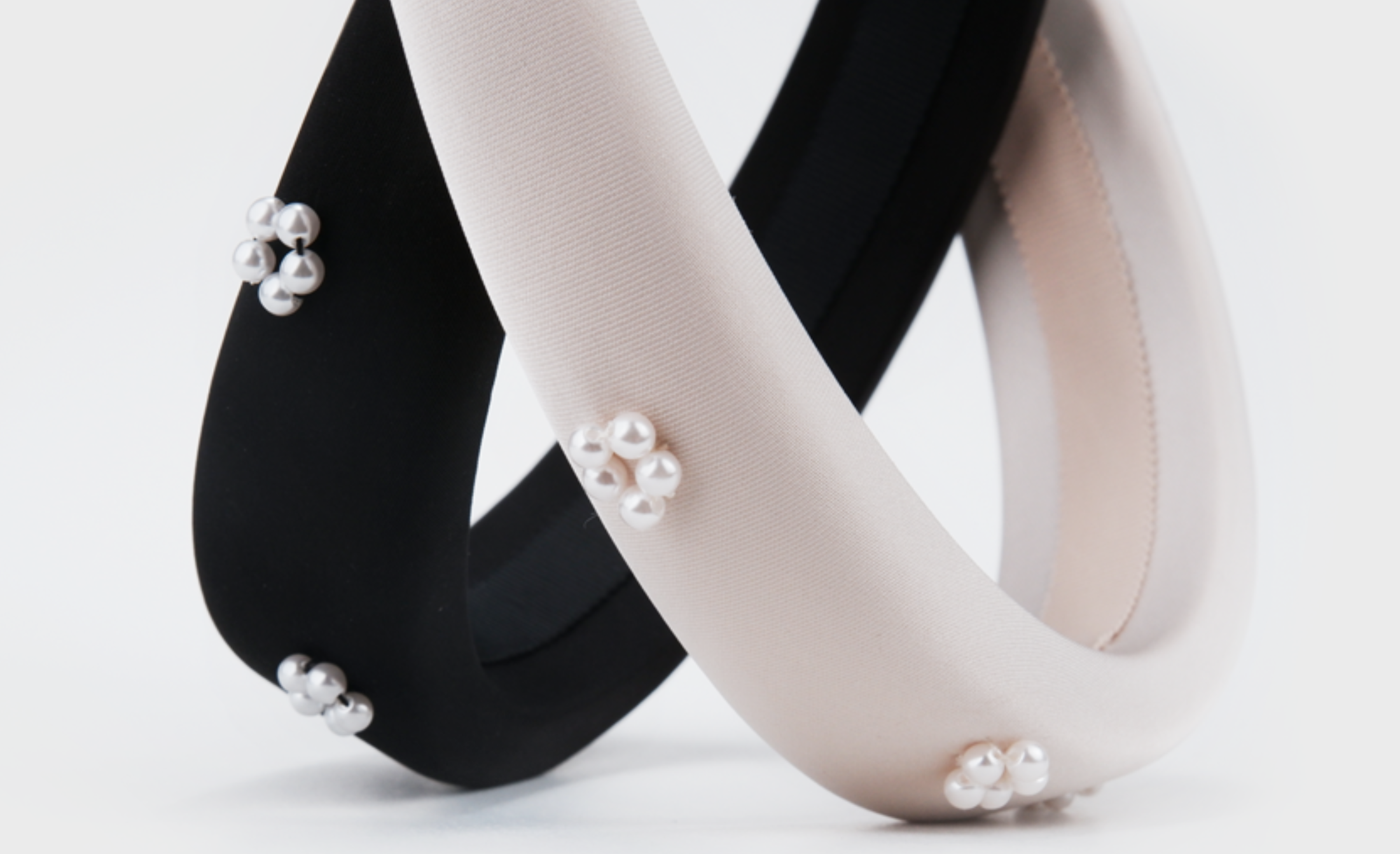 設計師選用光澤細膩的緞面佈料,搭配瑩潤珍珠,打造日常基礎發飾,呈現高級、優雅、百搭的佩戴效果。