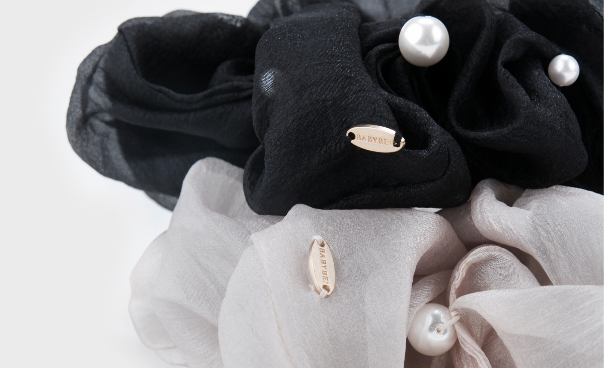 設計師選用光澤細膩的月光紗佈料,搭配瑩潤珍珠,打造日常基礎發飾,呈現高級、優雅、百搭的佩戴效果。