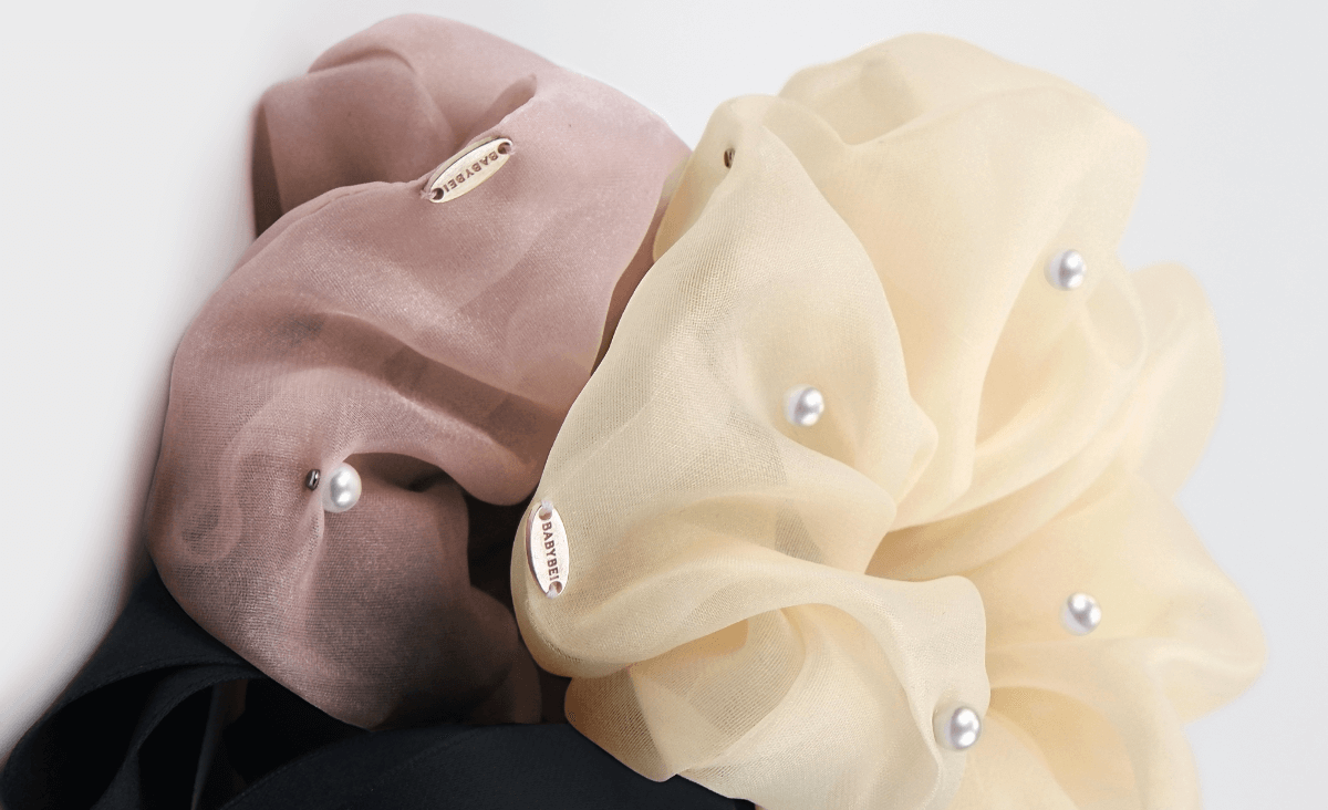 設計師選用啞光質感的歐根紗佈料和織帶佈料,搭配瑩潤珍珠,打造日常基礎發飾,呈現高級、優雅、百搭的佩戴效果。