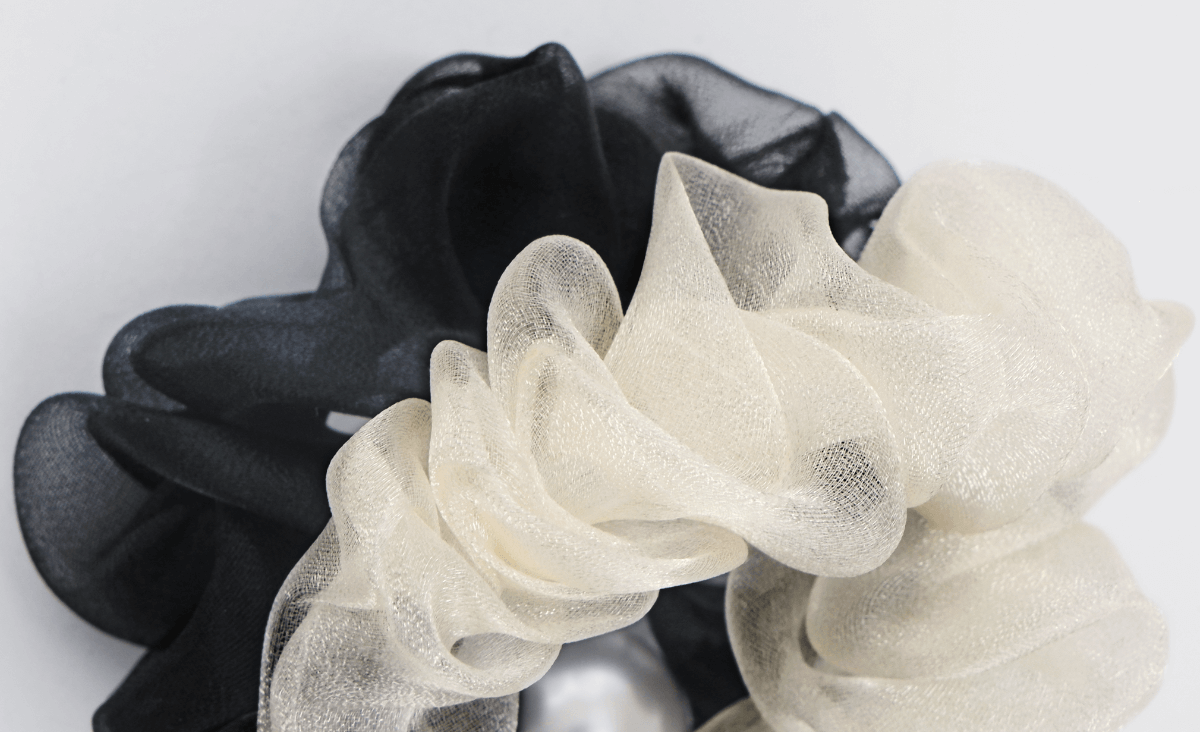 設計師選用光澤細膩的歐根紗佈料,搭配瑩潤珍珠,打造日常基礎發飾,呈現高級、優雅、百搭的佩戴效果。
