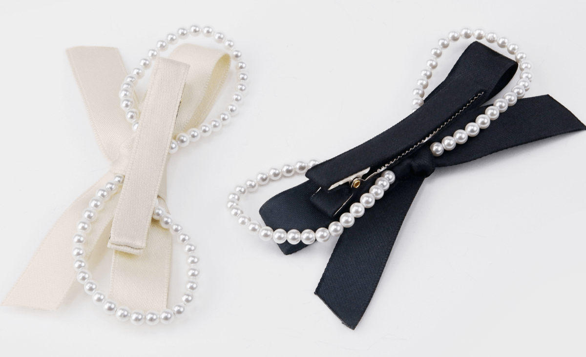 - 優雅設計:立體挺闊的蝴蝶結,搭配瑩潤珍珠串,溫柔雅致