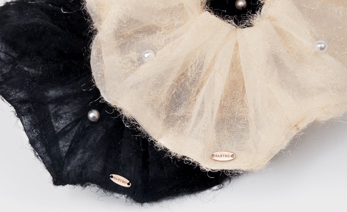 設計師選用光澤細膩的亮絲網紗佈料,搭配瑩潤珍珠,打造日常基礎發飾,呈現高級、優雅、百搭的佩戴效果。