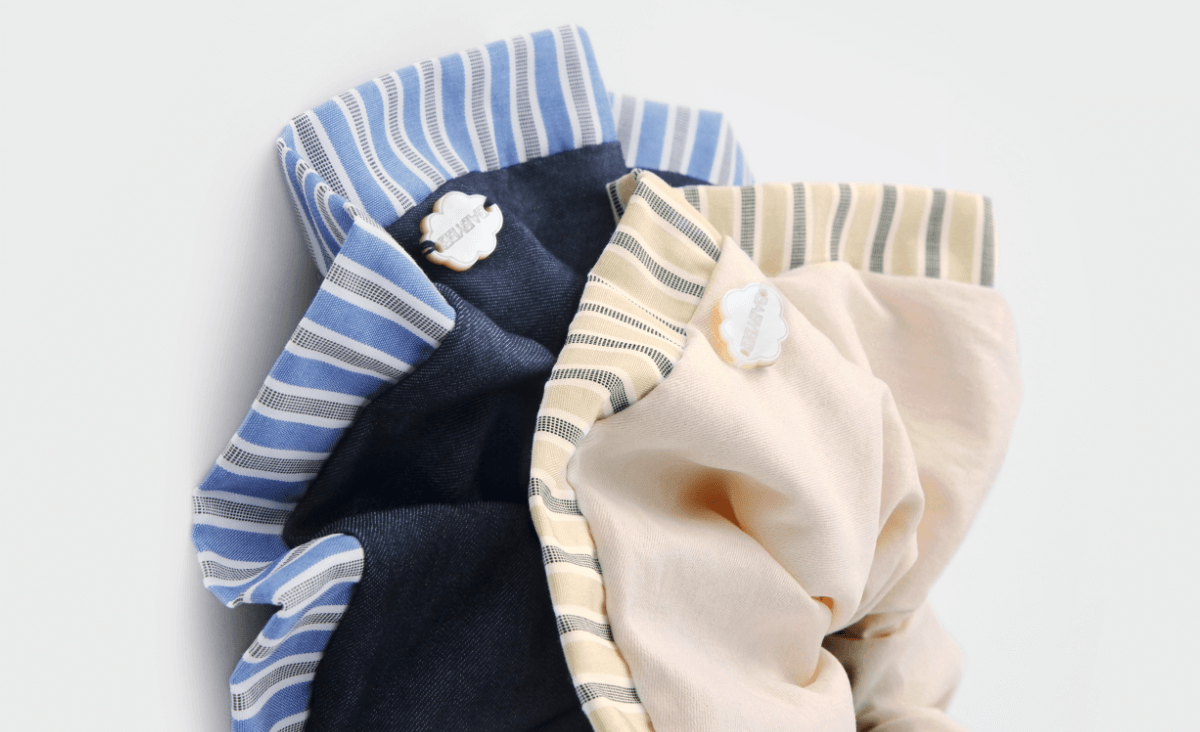 設計師選用啞光質感的條紋佈料,搭配瑩潤母貝,打造日常基礎發飾,呈現高級、優雅、百搭的佩戴效果。